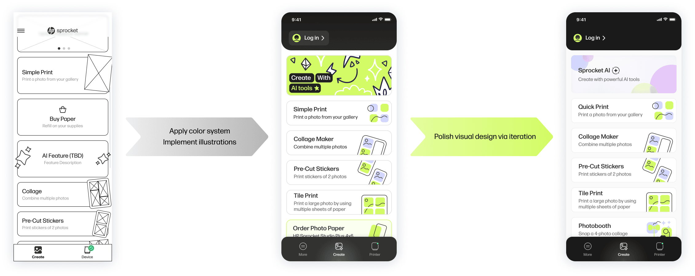 We continued to iterate on the selected visual direction until we were satisfied with the new look of Sprocket.